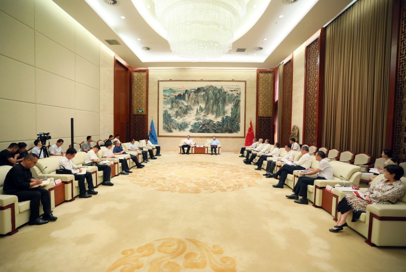 8月18日上午,中國五礦黨組書記、董事長翁祖亮會見了來訪的青海省海北州委書記夏吾杰一行,就對口支援工作進行交流。中國五礦黨組副書記、董事董明俊參加會見。