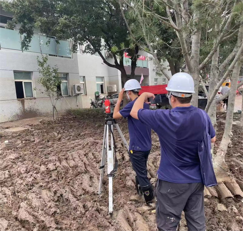 中冶建研院黨員突擊隊(duì)員進(jìn)行房屋傾斜檢測(cè)