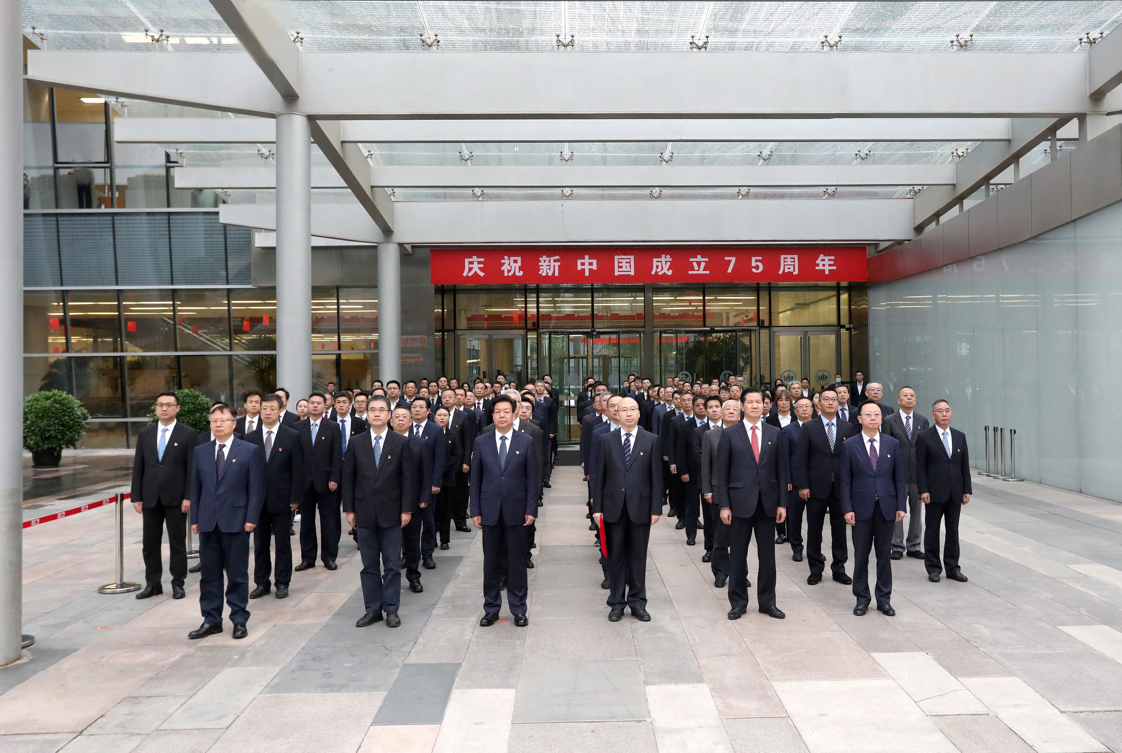 9月30日上午,中國五礦在五礦廣場舉行升國旗儀式,隆重慶祝中華人民共和國成立75周年,祝愿偉大祖國繁榮昌盛??偨?jīng)理、黨組副書記陳得信出席儀式并講話。黨組副書記、董事王杰之主持升旗儀式。黨組其他成員出席儀式。